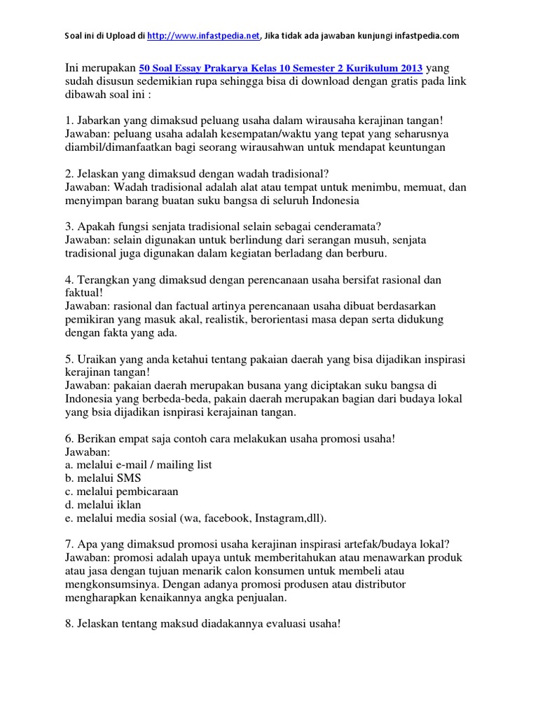 Contoh Soal Essay Prakarya Kelas 12 Semester 2 Kurikulum 2013 Edisi Revisi dan Jawaban – Tekape.id