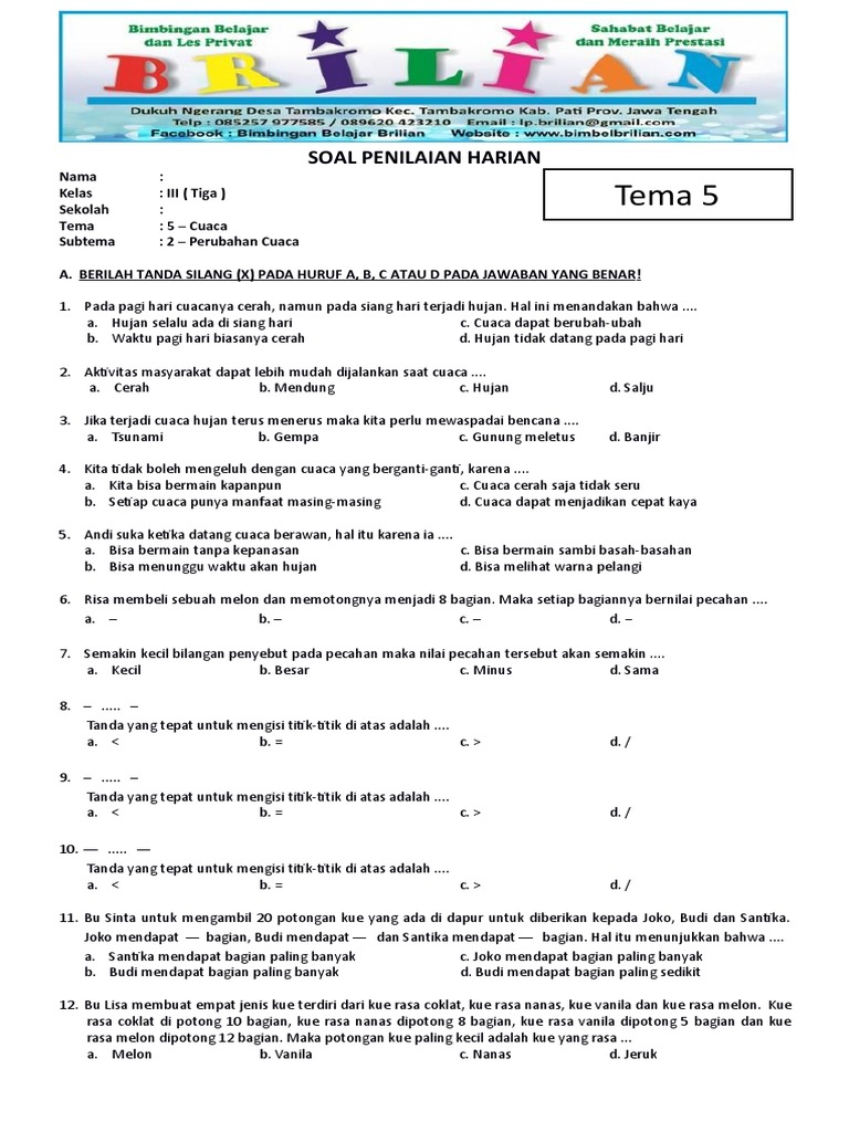 Soal Tematik Kelas 3 Tema 5 Cuaca Subtema 2 Perubahan Cuaca - Tech …