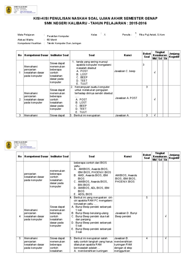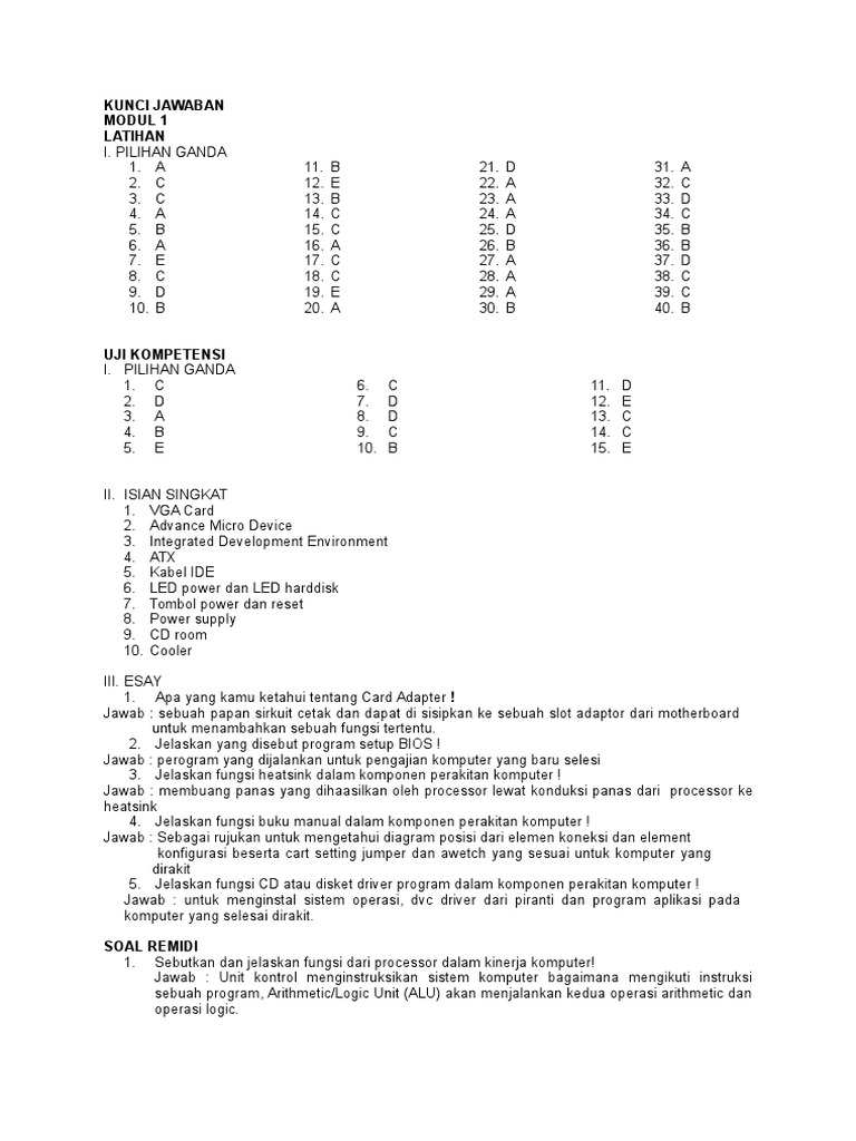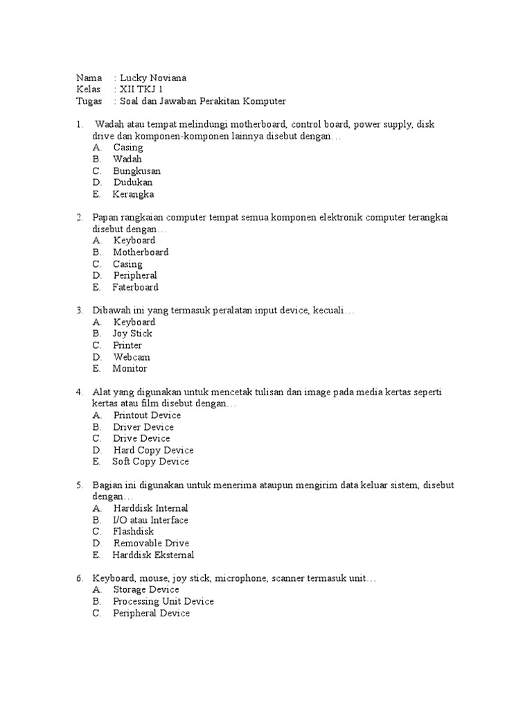 Contoh Soal Dan Jawaban Perakitan Komputer Pilihan Ganda - Guru …