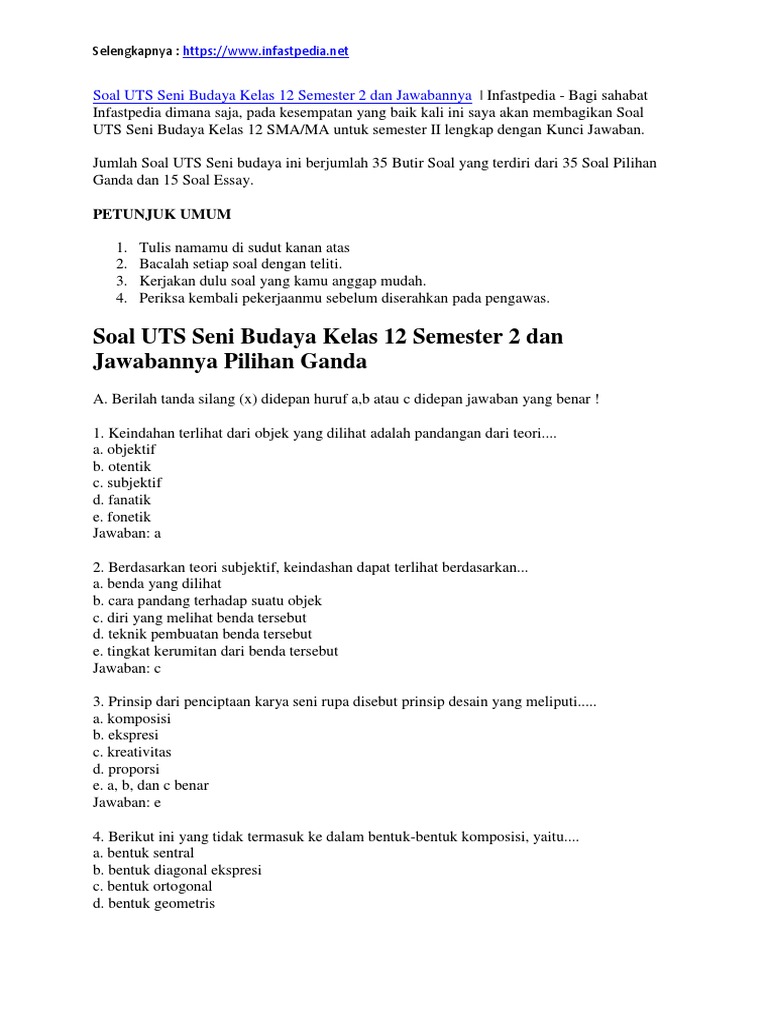 Soal Essay Seni Budaya Kelas 12 Semester 1 Dan Jawabannya - Guru …