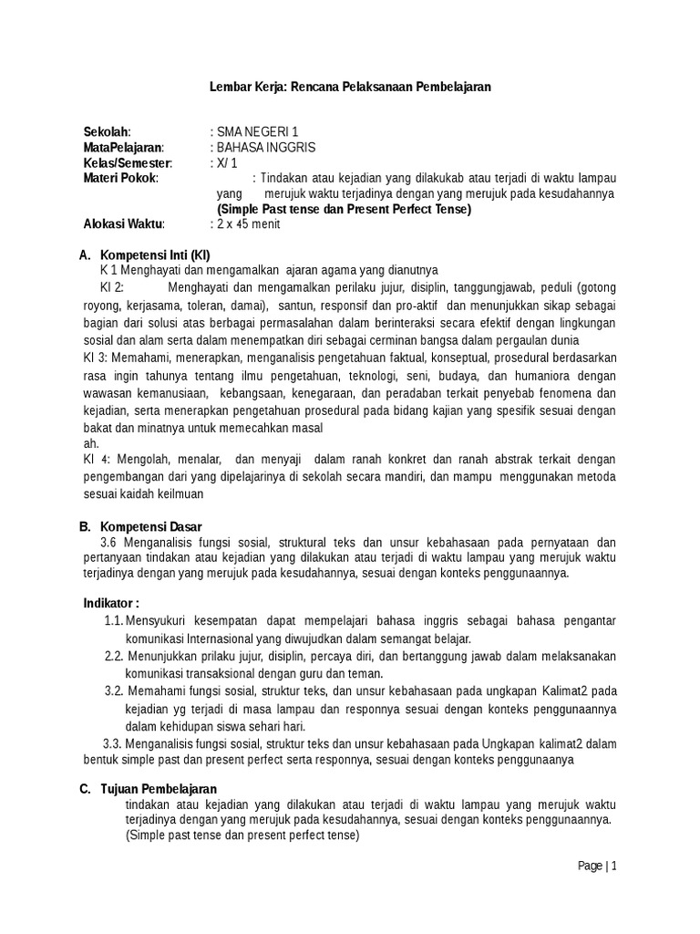 Contoh Rpp Simple Past Tense - Guru Ilmu Sosial