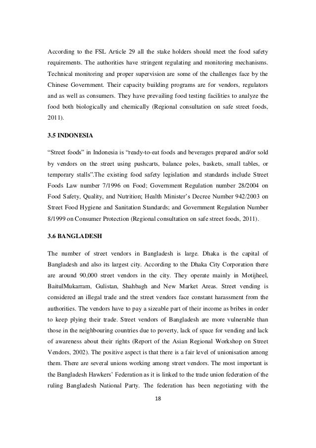 The Sanitation and Hygiene of Street Food Vendors Free Essay Example