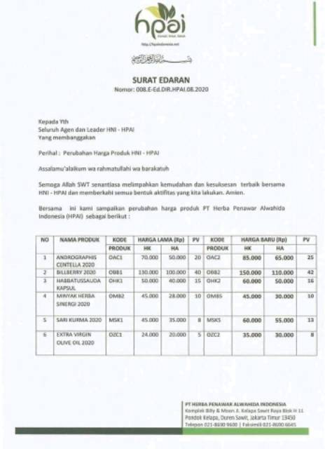 Contoh Surat Perubahan Harga Barang
