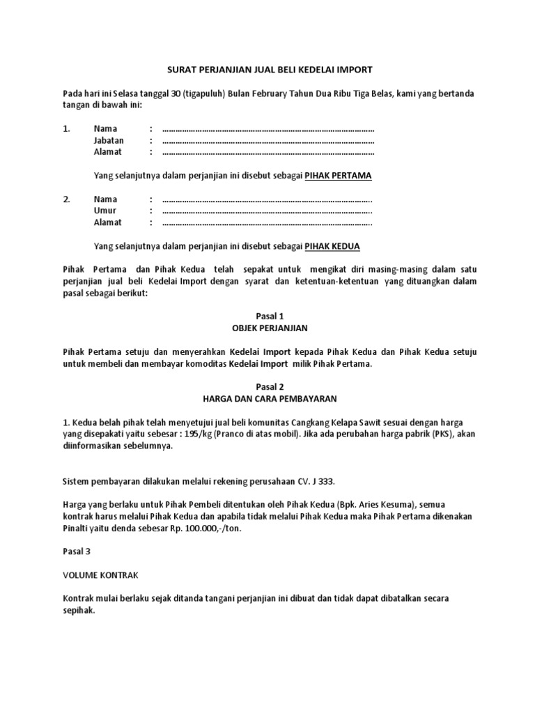 Surat Perjanjian Jual Beli Kedelai