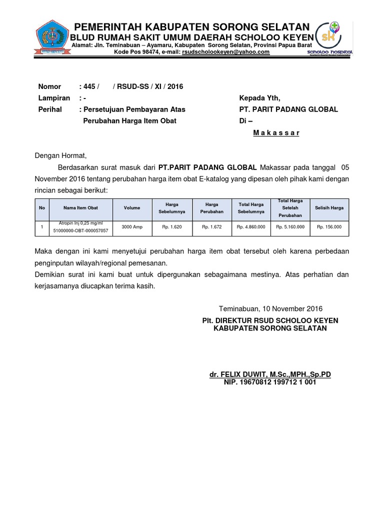 Surat Perubahan Harga Pt. Parit Padang
