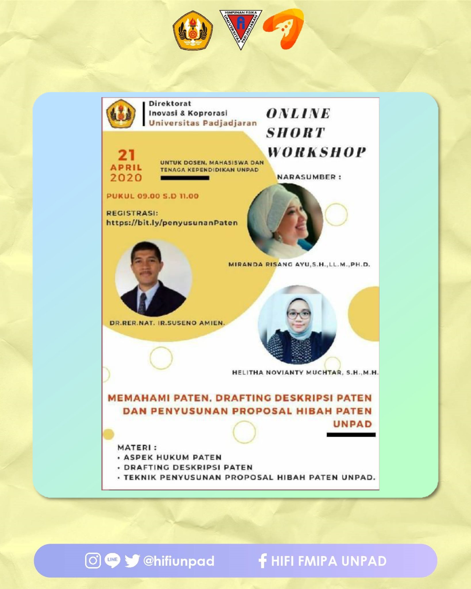 HIFI FMIPA UNPAD Twitter: “[ INFO WORKSHOP ONLINE ] Direktorat Inovasi & Korporasi Universitas Padjadjaran menyelenggarakan workshop online dengan tema ” Memahami Paten & Teknik Penyusunan Proposal Hibah Paten” Selasa,