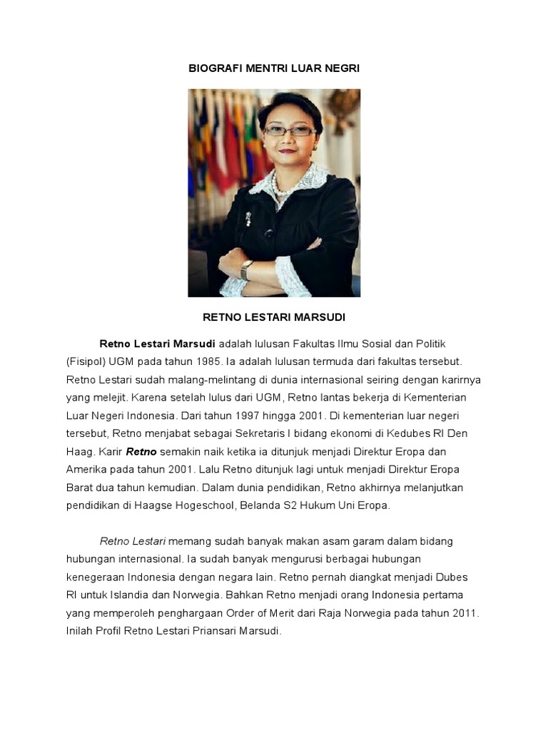 Pusat Biografi: Biografi Retno Lestari Priansari Marsudi, Sosok Menlu Yang Luar Biasa