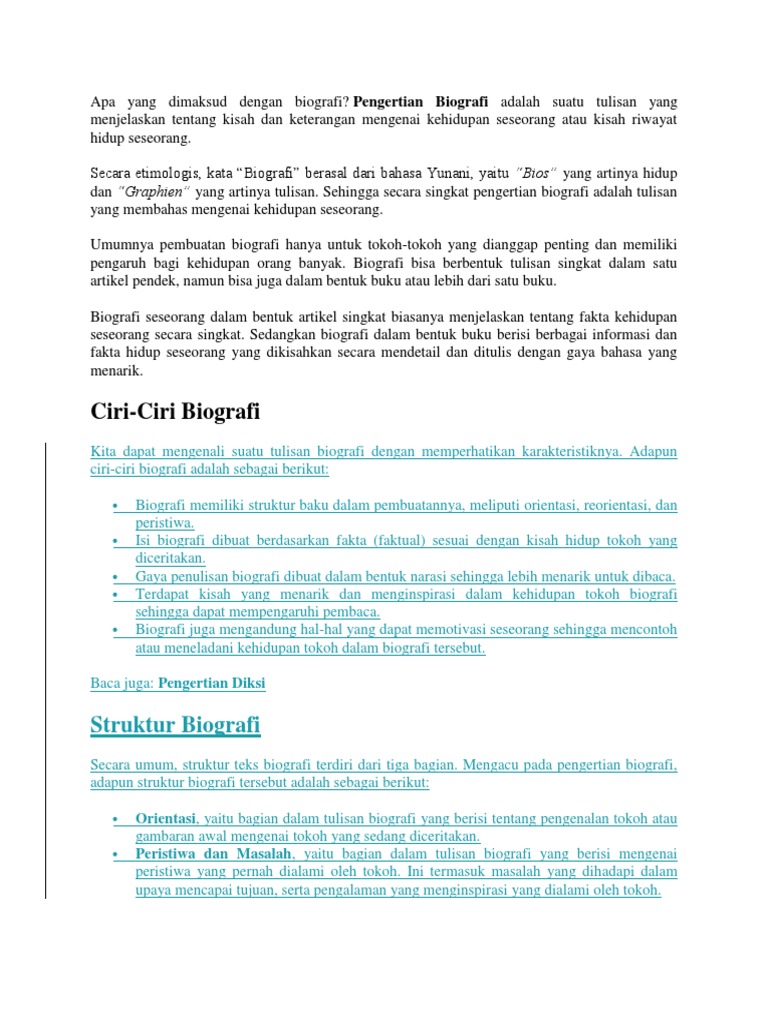 TEKS BIOGRAFI: Pengertian, Unsur, Kaidah, Ciri Ciri & Struktur Biografi | Salamadian