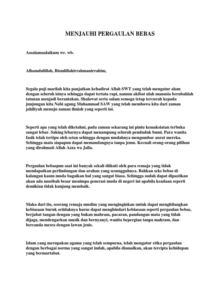DOC) Teks Ceramah Agama Islam Tentang Pergaulan Bebas | bedjo …