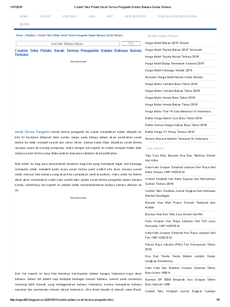 Contoh Teks Pidato Serah Terima Pengantin Dalam Bahasa Sunda Terbaru2