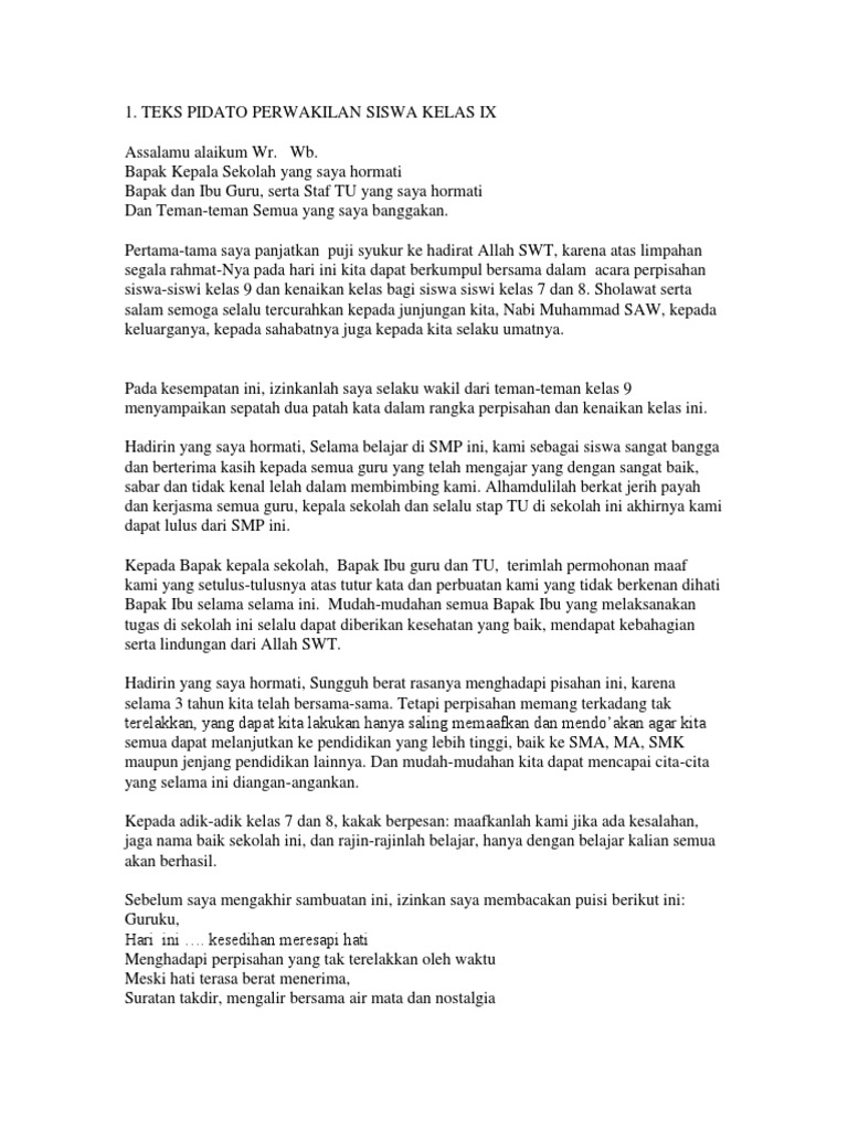 Teks Pidato Perpisahan Kelas 6 Singkat Terkait Teks - Cute766
