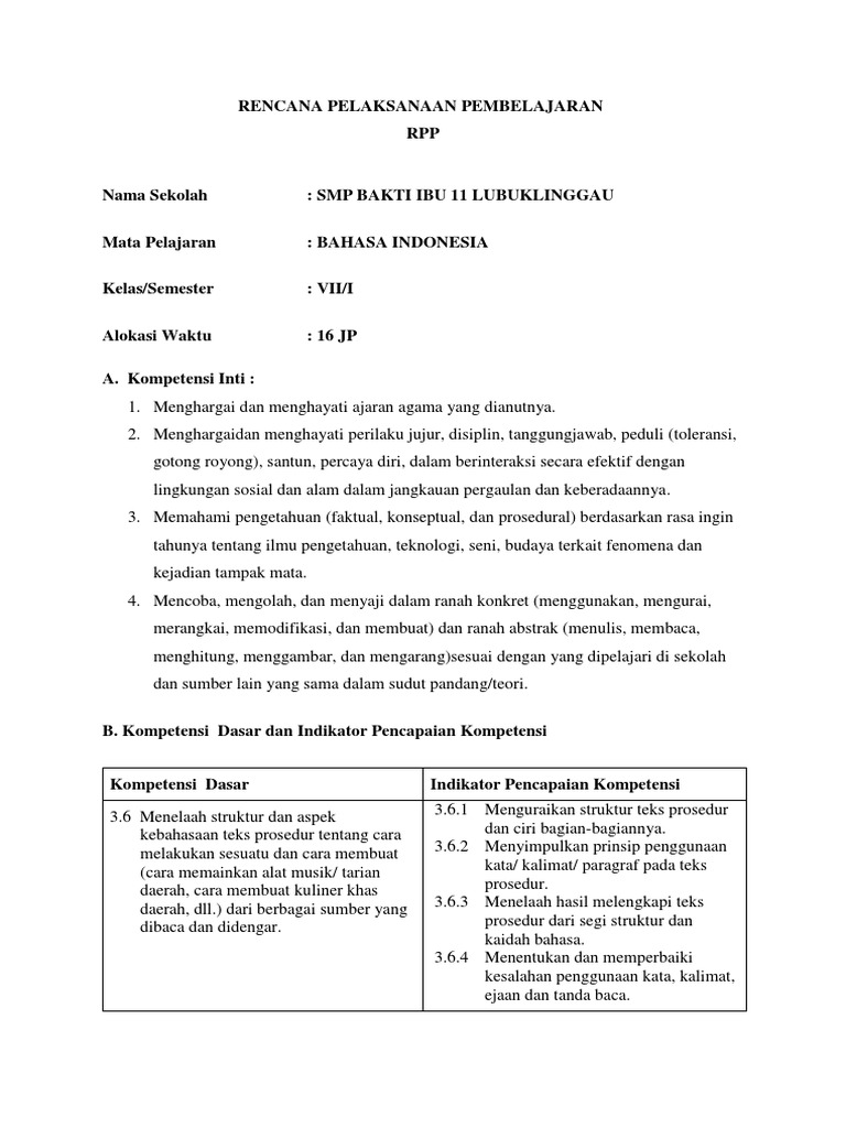 DOC) RPP BAHASA INDONESIA KELAS VII BAB 3 TEKS PROSEDUR.docx | Asisten Nur - Academia.edu