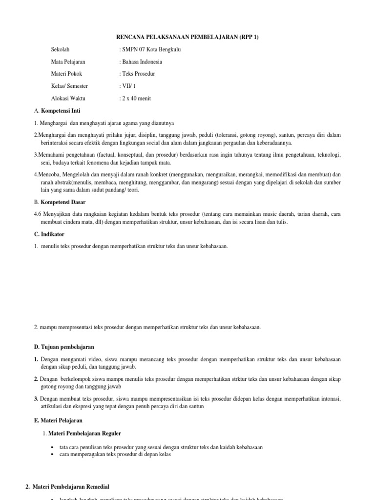 DOC) rpp teks prosedure.docx | Nella 123 - Academia.edu