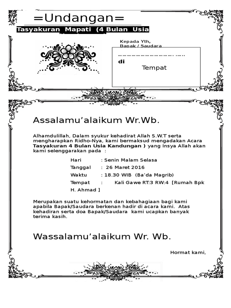 DOC) Undangan 4 bulanan UNDANGAN SYUKURAN | syarli putri - Academia.edu