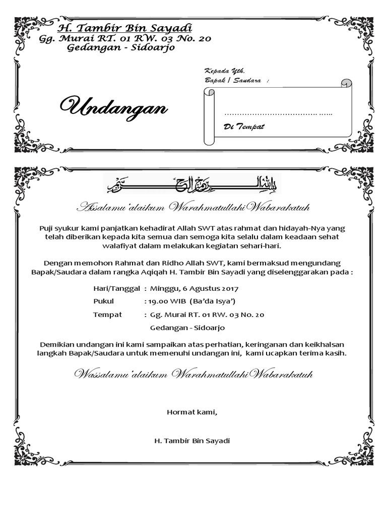 DOC) Contoh Surat Undangan Aqiqah | Kayancyber Kayancyber - Academia.edu