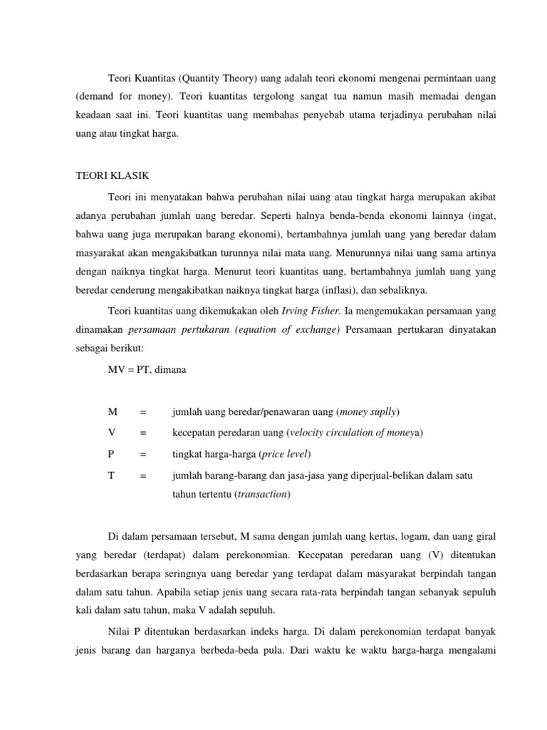 Teori Kuantitas Uang