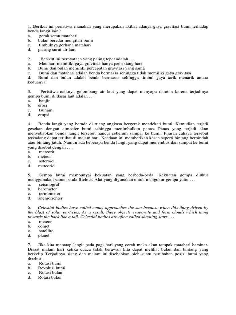 Soal IPA Tentang Tatasurya Kls 7