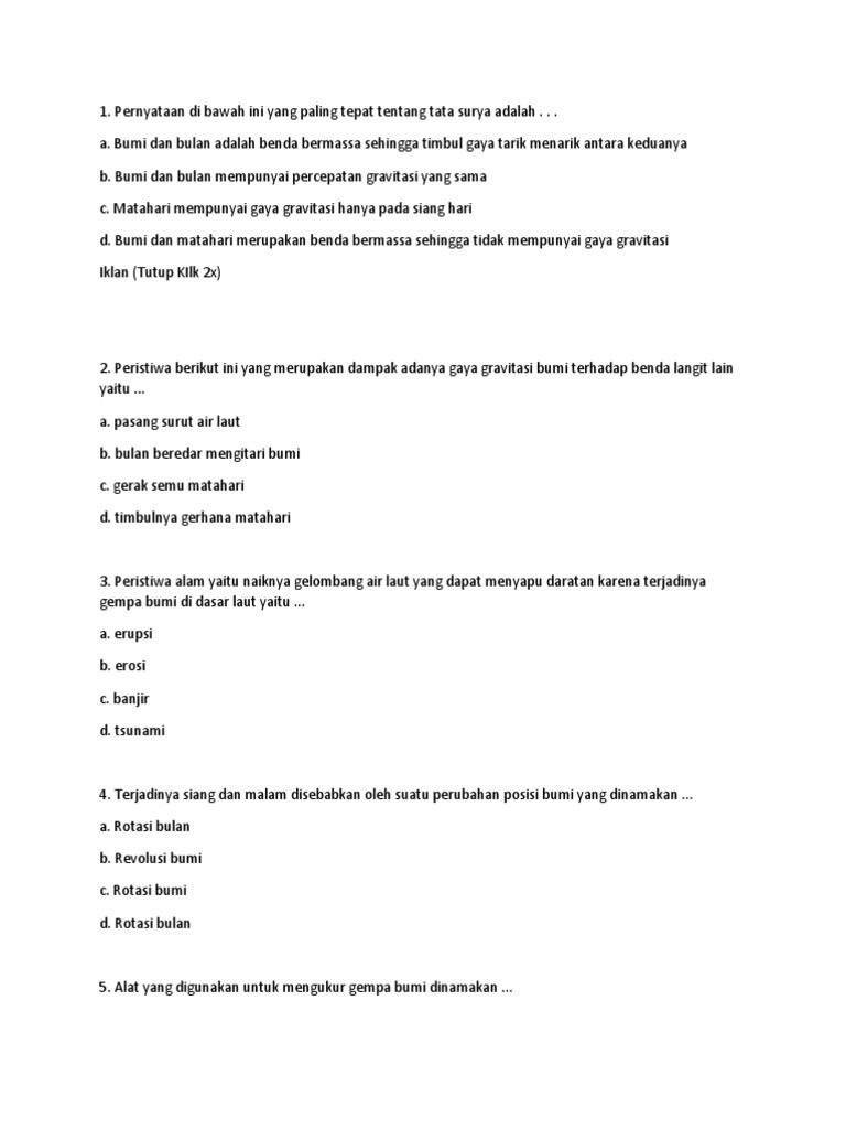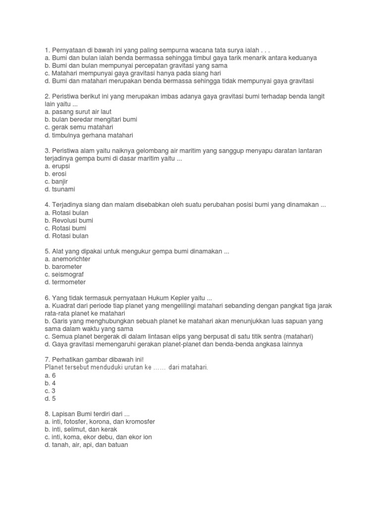 Soal IPA tentang Tata Surya & Jawaban, Essay, Pilihan Ganda - Muttaqin id