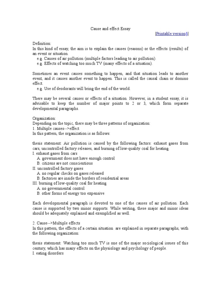 Cause and Effect Essay | Causality | Essays