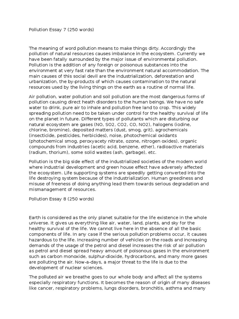 Pollution Essay In English 300 Words A Day