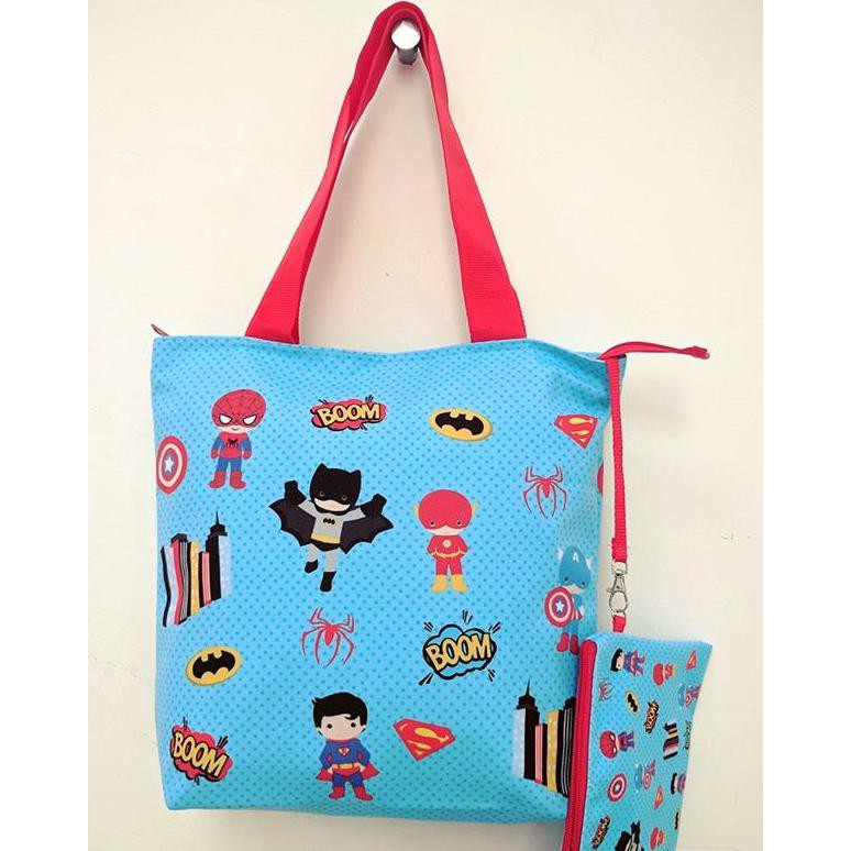 Tote bag/ tas bahu wanita bahan kain drill import motif trendy …