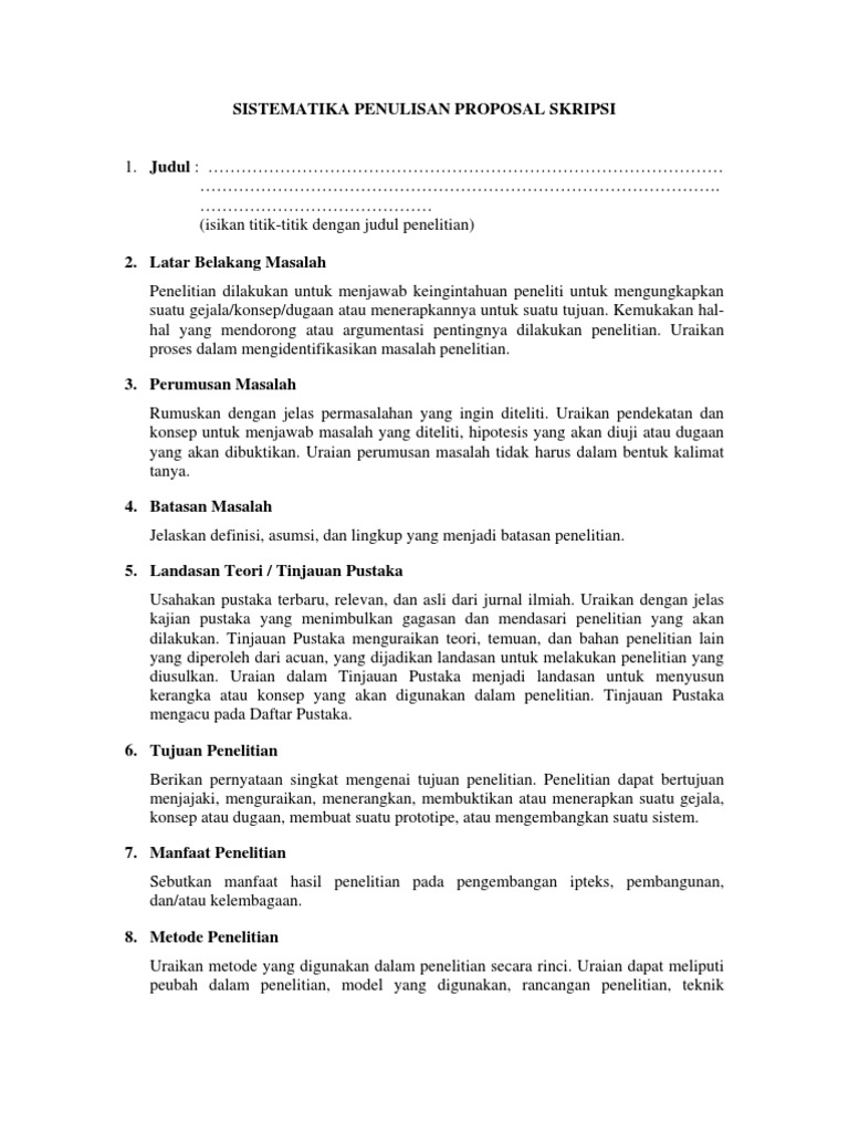 DOC) SISTEMATIKA PENULISAN PROPOSAL Petunjuk Penulisan Skripsi | Prasetyo Huri - Academia.edu
