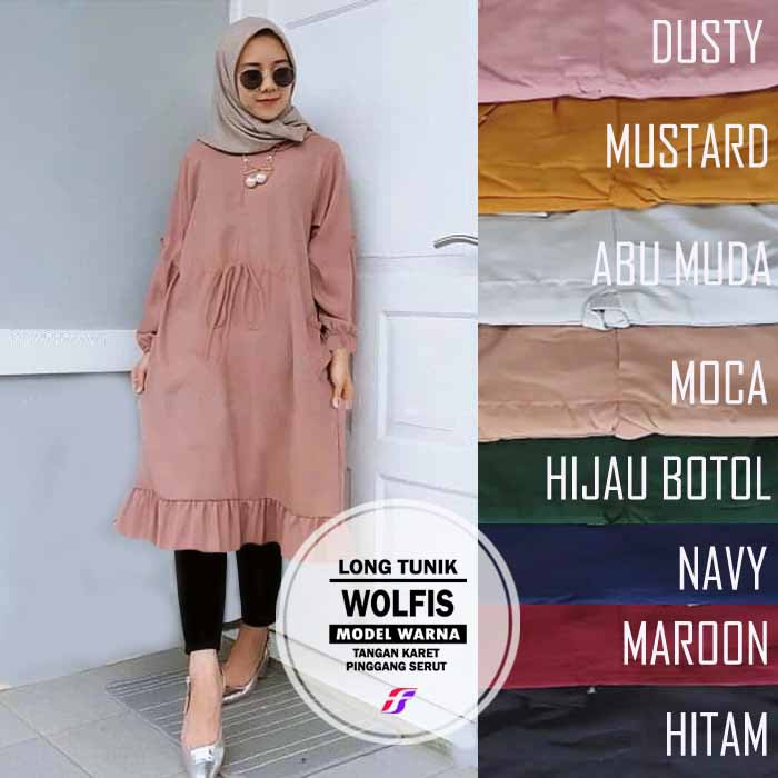Long tunik cantik bahan wolfis polos | Shopee Indonesia