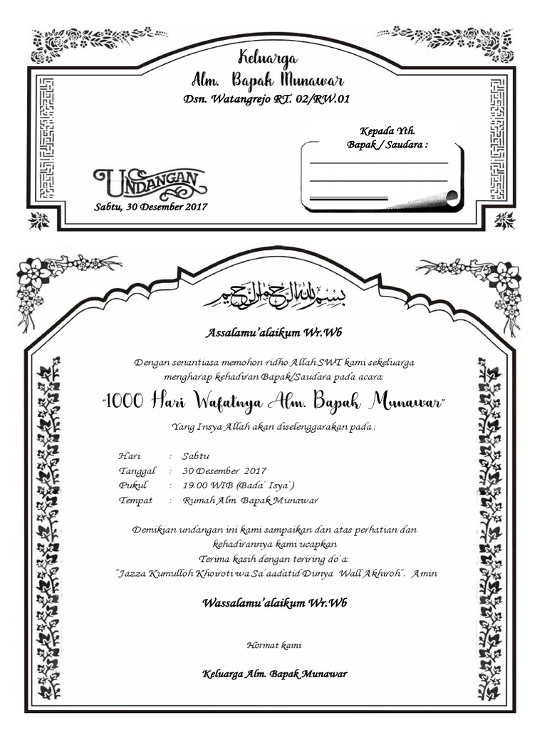 Undangan Tahlil 1000 Hari Doc | Blog Stress