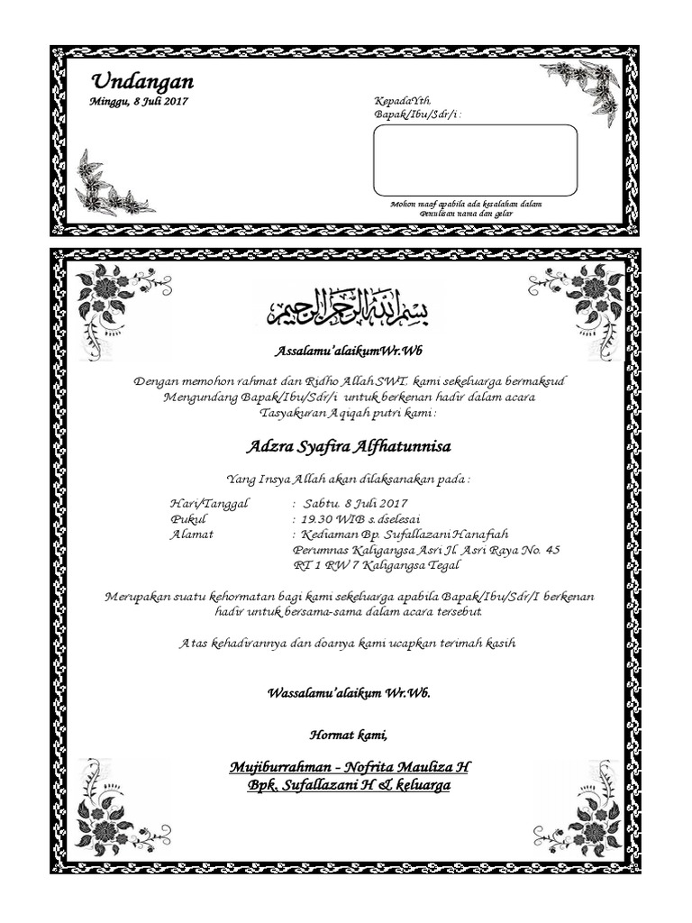 Contoh Undangan Aqiqah.docx - Google Drive | Contoh kartu nama, Undangan, Buku untuk dibaca