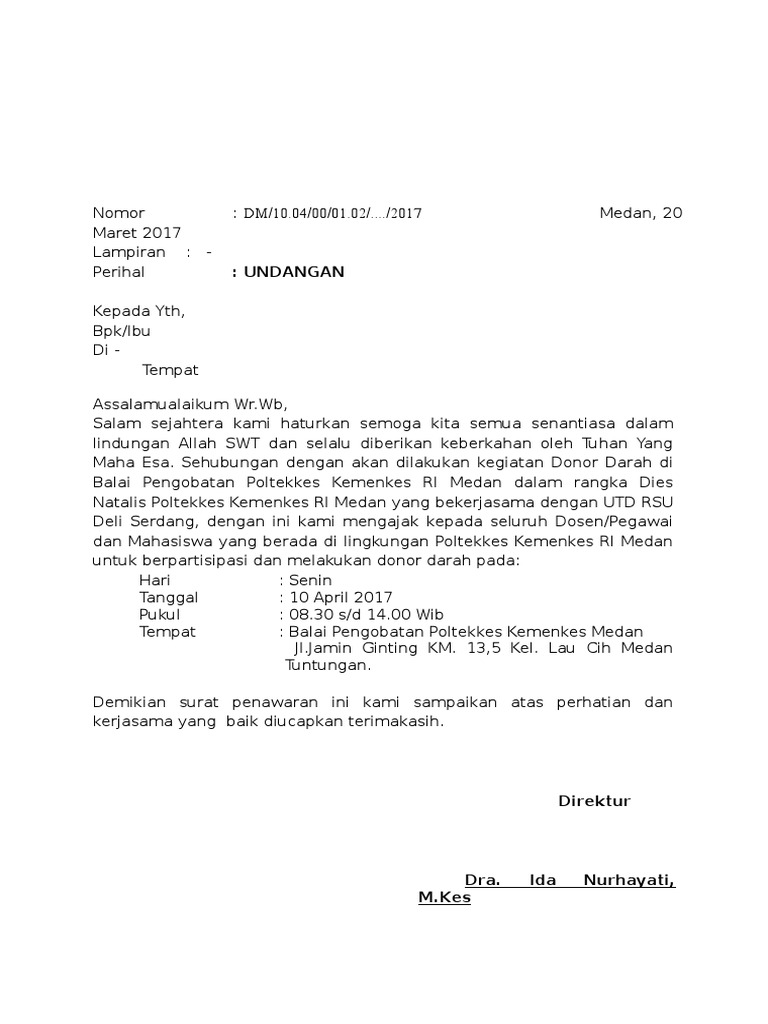 Contoh Surat Undangan Resmi Donor Darah