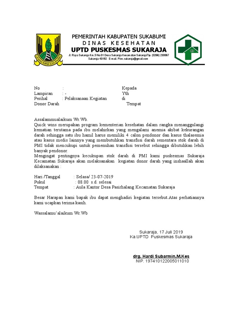 Contoh Surat Undangan Donor Darah