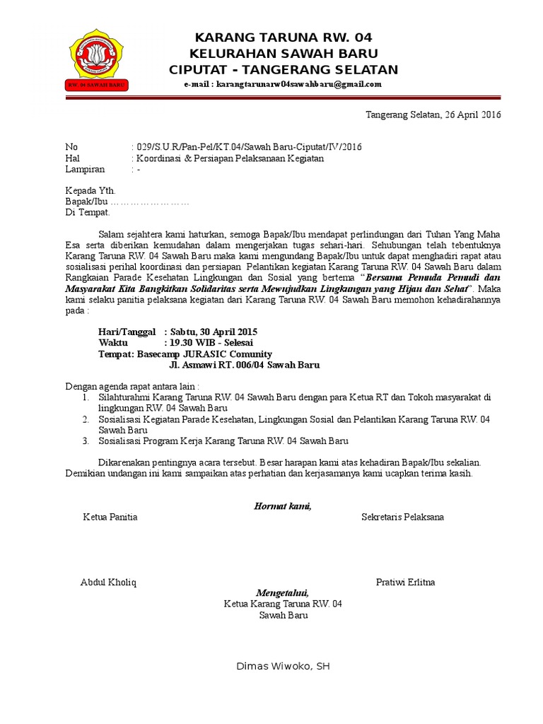 Contoh Surat Undangan Karang Taruna + File DOC — DYP.im