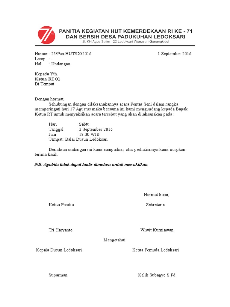 Contoh Surat Undangan Pentas Seni 17 Agustus