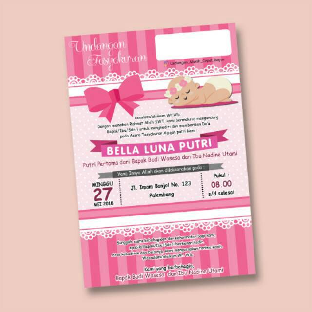 Undangan Aqiqah / Tasmiyah / Syukuran / Tasyakuran / Marhabah / Ultah (Minimal order 100 pcs) | Shopee Indonesia