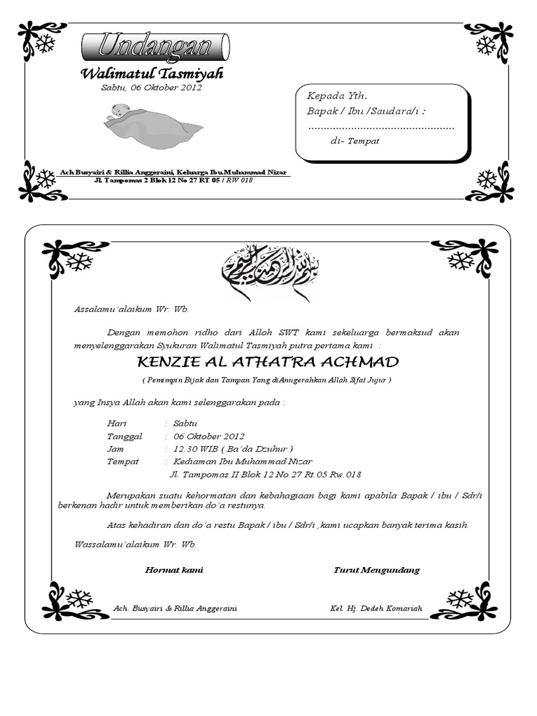 contoh surat undangan tasmiyah aqiqah – 0896~7465~4330 (WA) Undangan Aqiqah