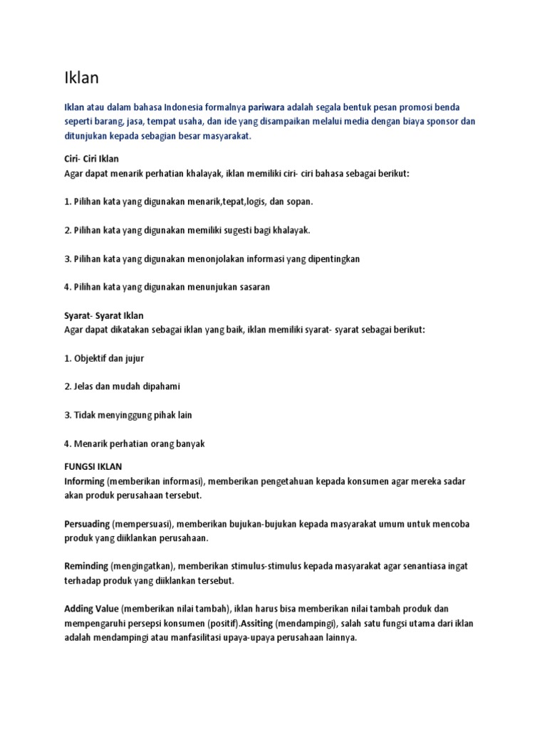 Iklan: Iklan atau dalam bahasa Indonesia formalnya pariwara adalah segala bentuk pesan promosi benda