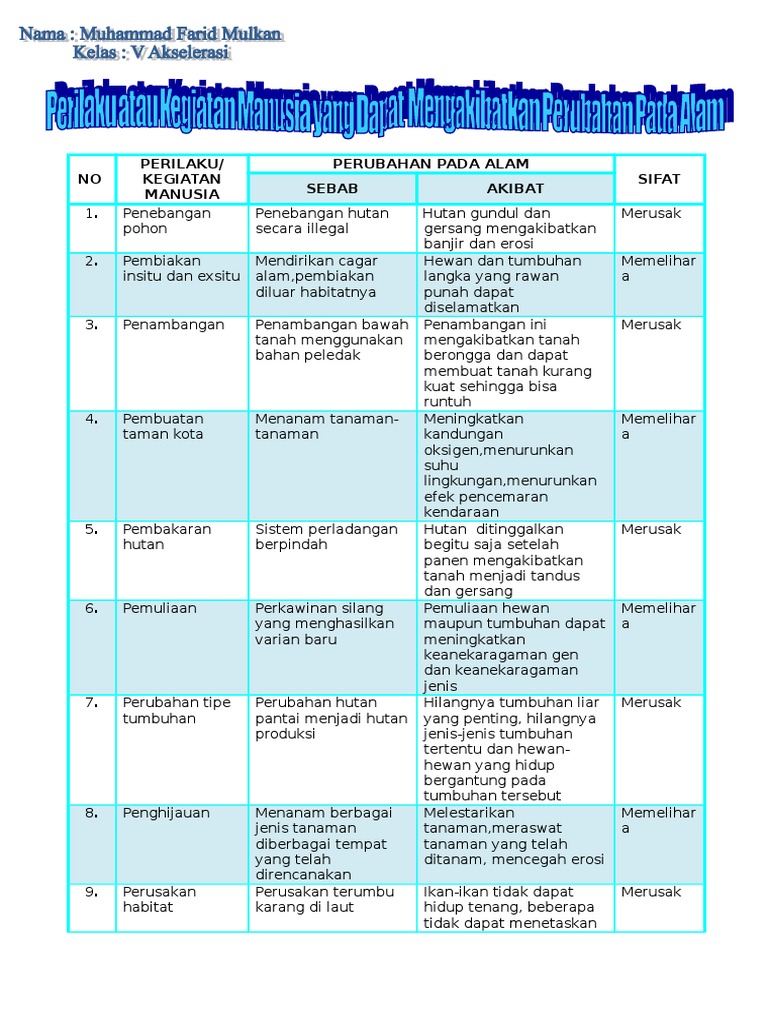 DOC) PERUBAHAN LINGKUNGAN DAPAT MERUSAK LINGKUNGAN | Priyo Albagaz - Academia.edu