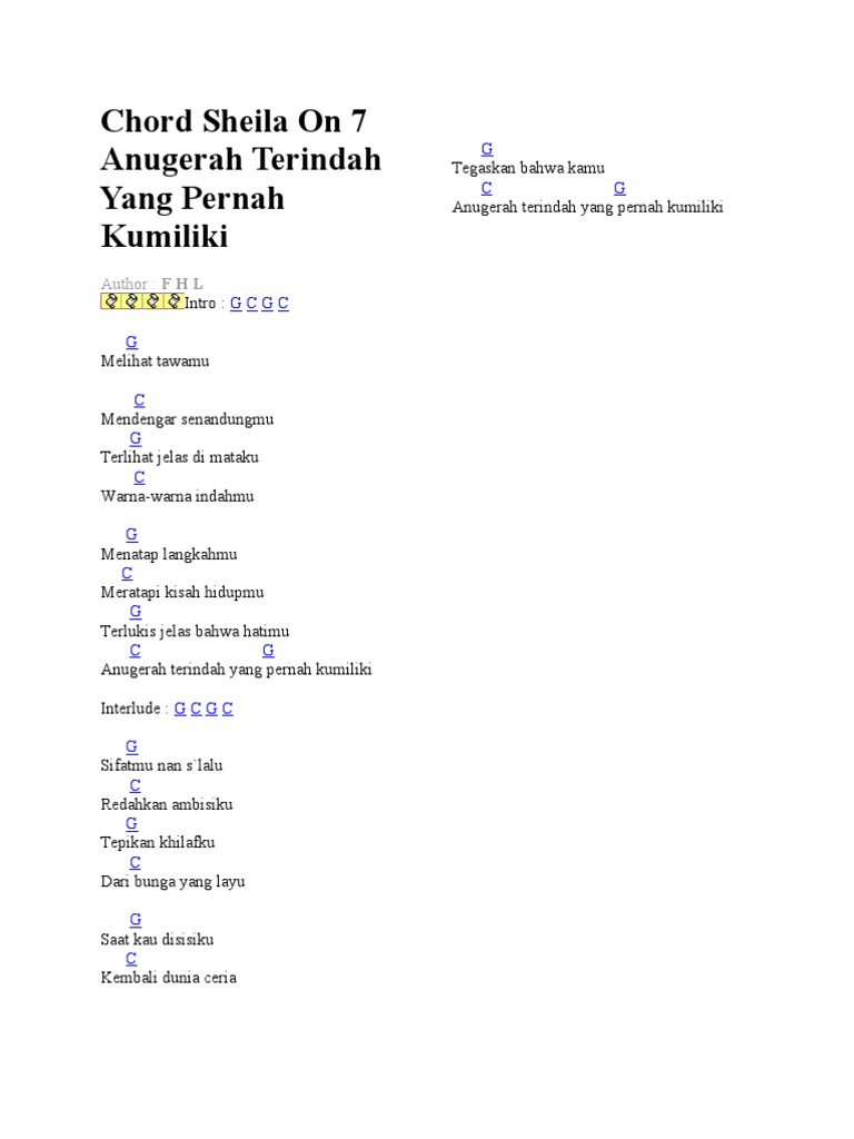 Chord Anugerah Terindah Yang Pernah Kumiliki (Versi 2) By Sheila On 7 | Chordlicious