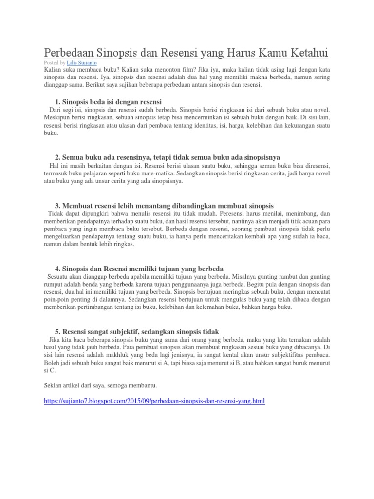 PDF) Sinopsis, Ikhtisar, Ringkasan, Resensi dan Makalah.pdf | Lusi Agustianti - Academia.edu
