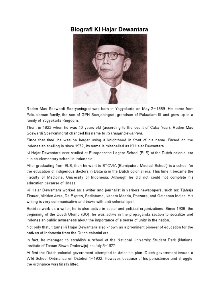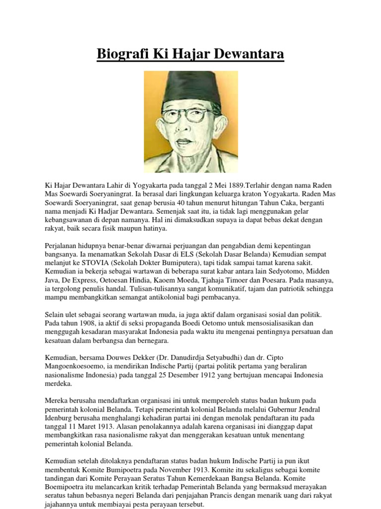 TEKS BIOGRAFI KI HAJAR DEWANTARA.docx - TEKS BIOGRAFI KI HAJAR DEWANTARA Orientasi Raden Mas Soewardi Soeryaningrat adalah nama kecil dari Ki Hajar | Course Hero