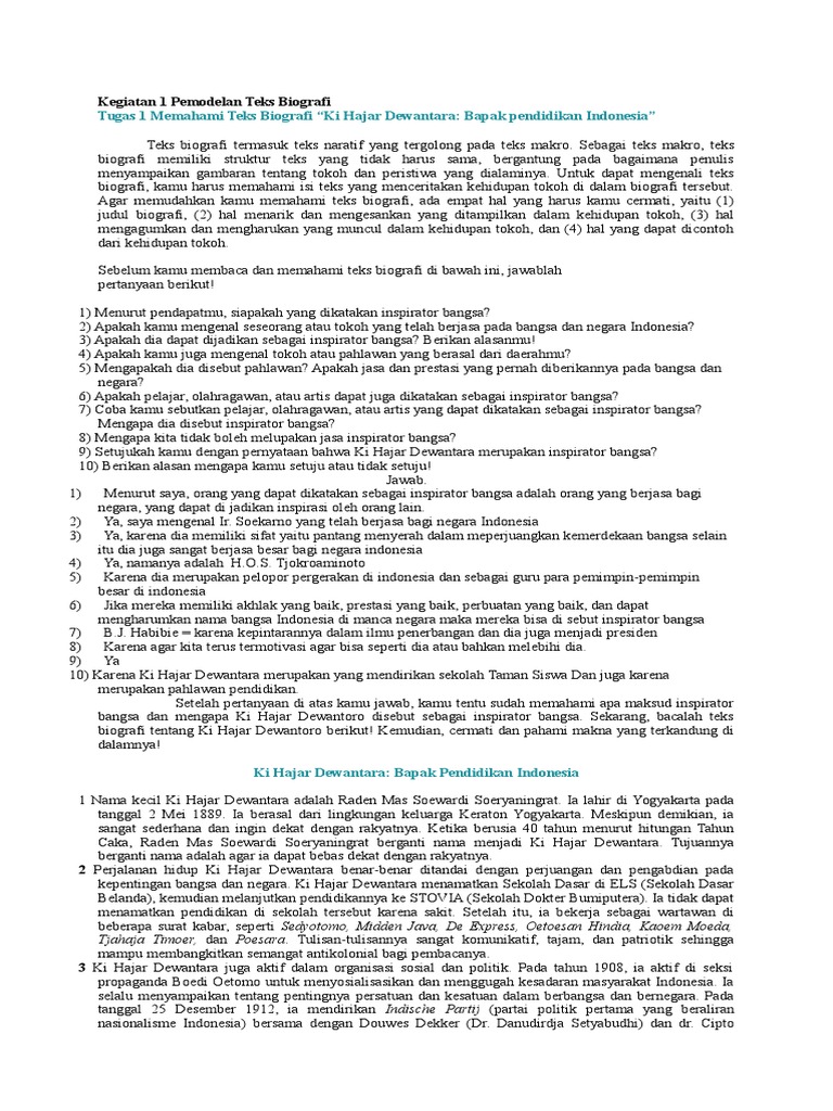 Tugas 1 Memahami Teks Biografi “Ki Hajar Dewantara: Bapak Pendidikan Indonesia” - OmBindo