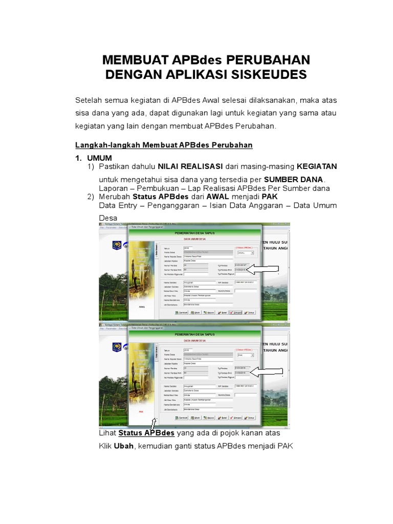 Perubahan APBDes Siskeudes,Berikut Ini Caranya - Updesa %