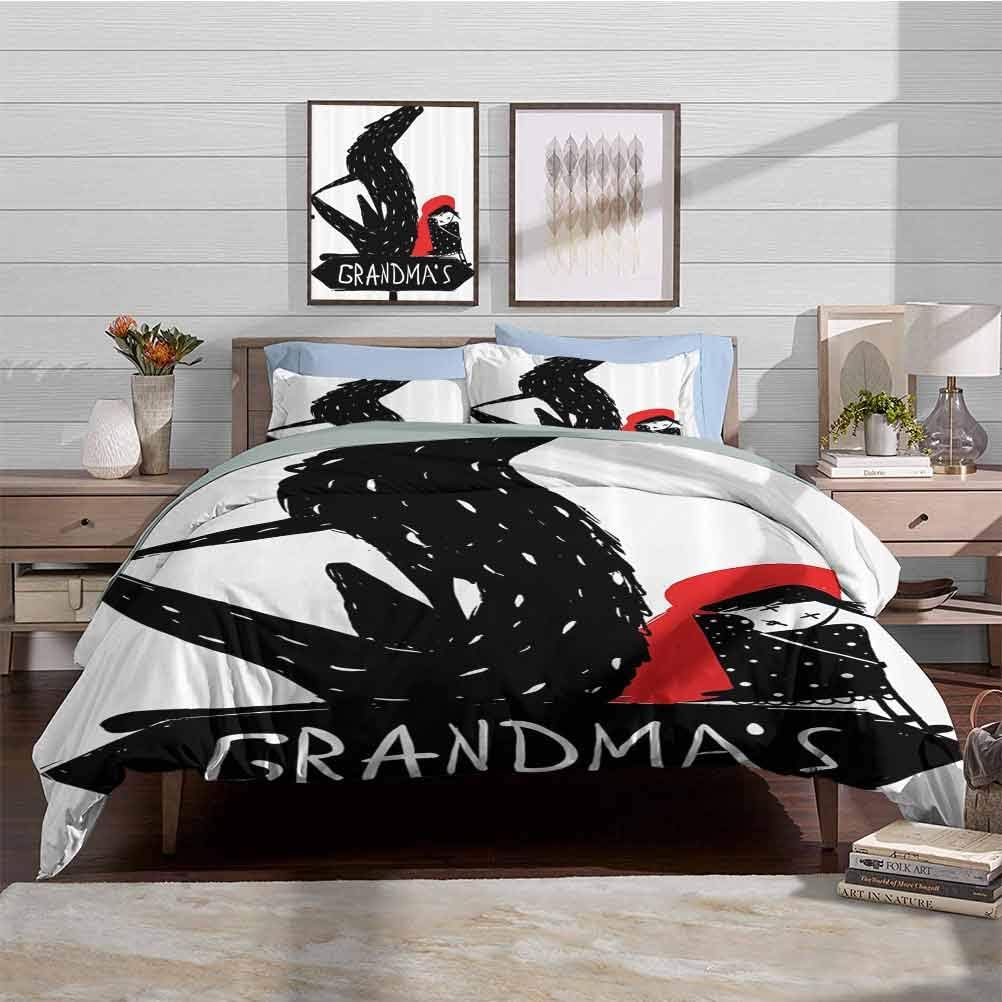 Amazon.com: Bedding Duvet Cover Set Red and Black Bed Quilt Cover Decor Cartoon Girl with Cape and Sketchy Evil Wolf Fairytale Kid Decor Decorative 3 Piece Bedding Set with 2 Pillow Shams,