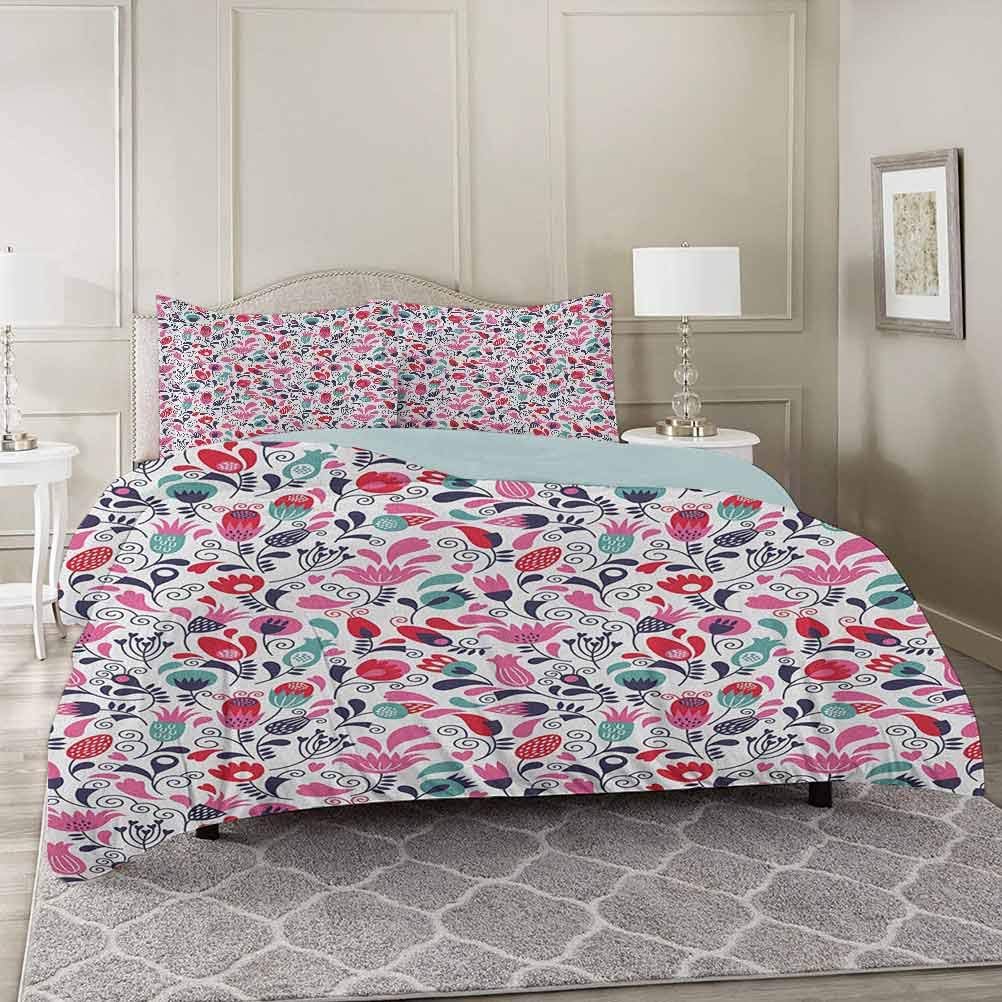 Amazon.com: YUAZHOQI Tulip Bedding Duvet Cover Sets Full, Floral Background with Linked Swirling Tulip and Branches Fresh Ornate Arti Super Soft Microfiber 3 Piece Duvet Cover Set Includes 2 Pillow Shams: Home