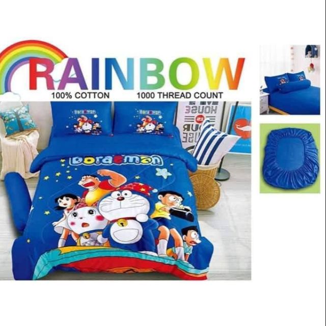 Doraemon 4 in 1 Fitted Bed Sheet Quilt Cover Bedding Set For Kids Bed 1.5m 1.8m | Shopee Singapore