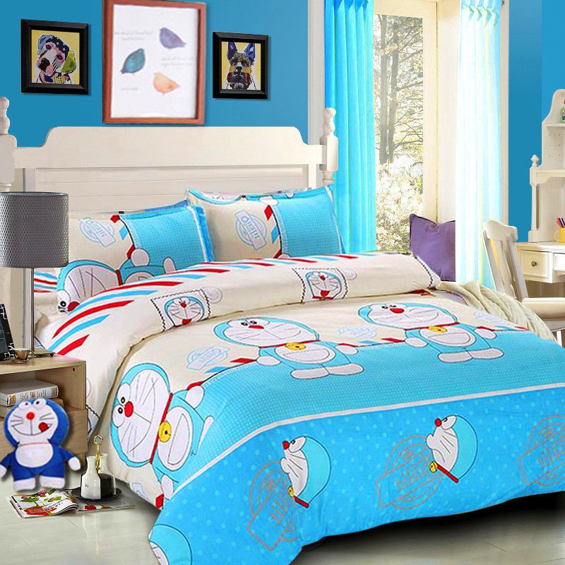 Doraemon cartoon four-piece set cotton cotton children bedding boy bed sheet quilt cover dormitory | Lazada