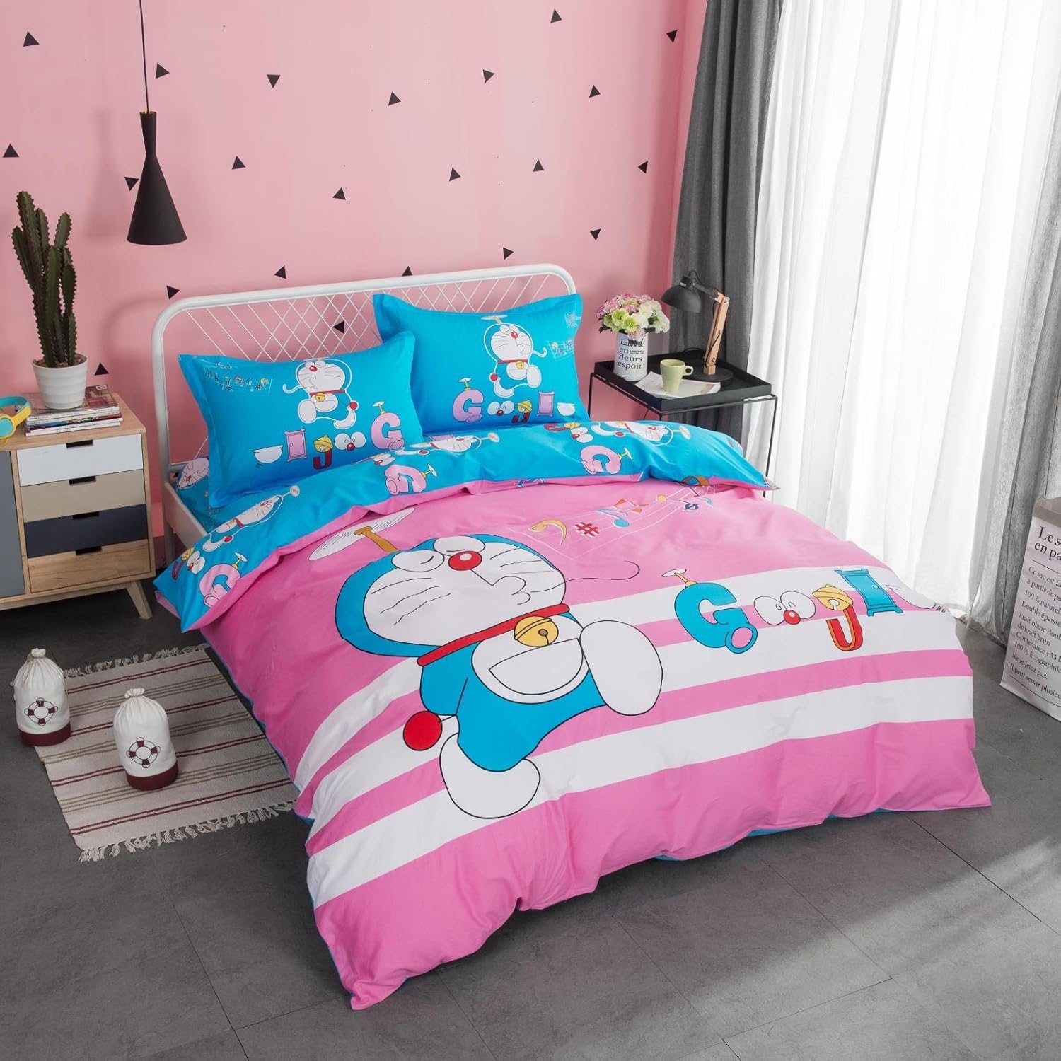 Amazon.com: Casa 100% Cotton Kids Bedding Set Girls Doraemon Duvet Cover and Pillow Cases and Fitted Sheet,Girls,4 Pieces,Full: Home & Kitchen
