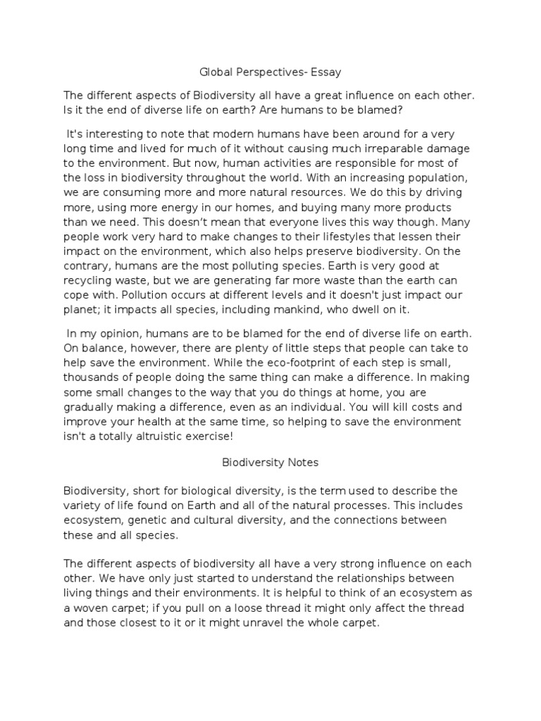 Essay about biodiversity