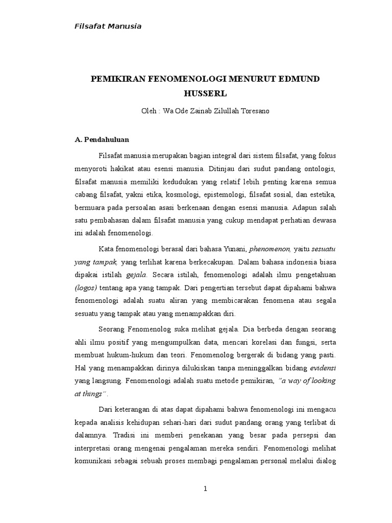 PDF) Pemikiaran Fenomenologi Edmund Husserl PEMIKIRAN FENOMENOLOGI EDMUND HUSSERL DAN APLIKASINYA DALAM DUNIA SAINS DAN STUDI AGAMA | Risyad Fatulah - Academia.edu