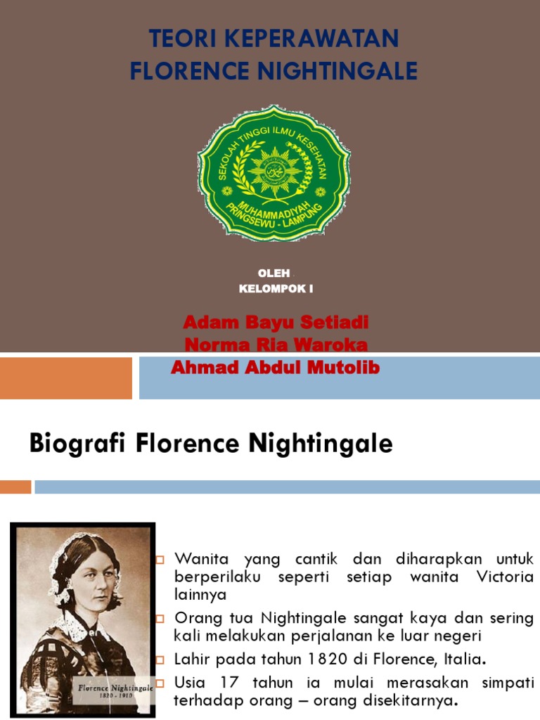 Teori Keperawatan Florence Nightingale: Adam Bayu Setiadi Norma Ria Waroka Ahmad Abdul Mutolib